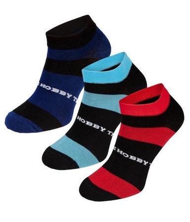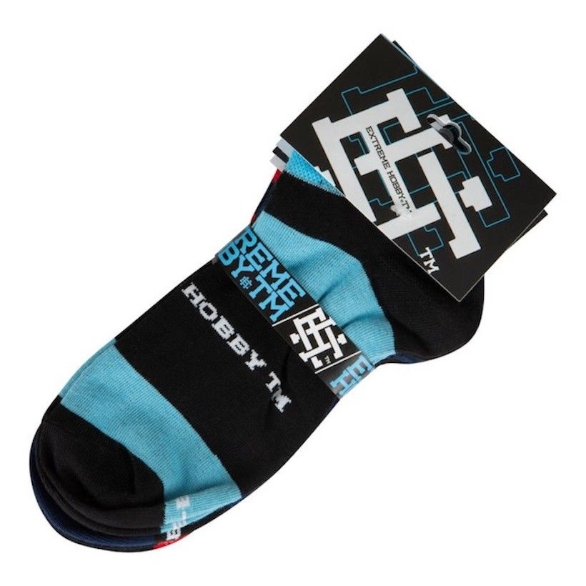 Zestaw trzech par skarpetek krótkich Extreme Hobby, które zapewniają komfort chodzenia przez cały sezon letni. Chronią stopę przed otarciami oraz odprowadzają nadmiar potu. Odpowiednio wyprofilowana dzianina na pięcie, doskonale przylega do stopy i ją stabilizuje.