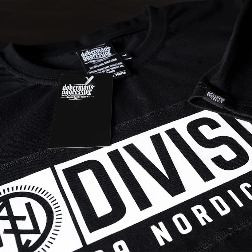 Na plecach posiada dużą grafikę z napisem Division Nordic Company i logo z symbolem runicznym, przód gładki, bez żadnych logotypów. Nadruki wykonany techniką termotransferu.