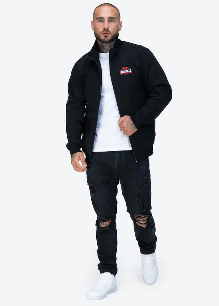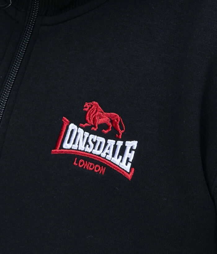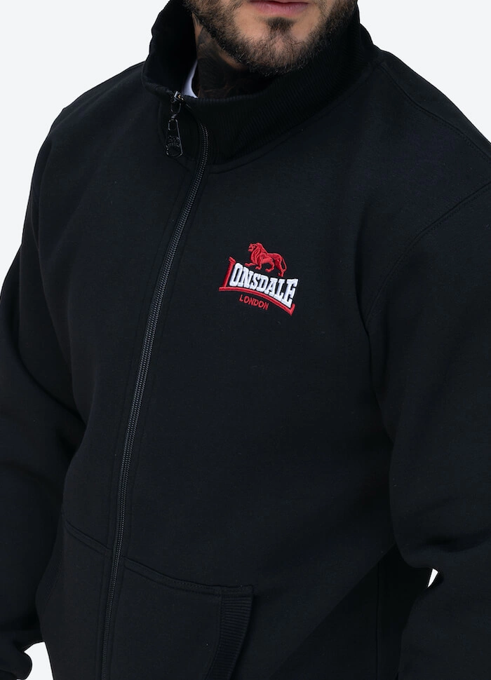 Rozpinana bluza typu stójka Lonsdale London Cropston. Na sercu posiada mała haftowane logo firmowe Lonsdale. Z boku na dole mała wszywka z flagą Union Jack.