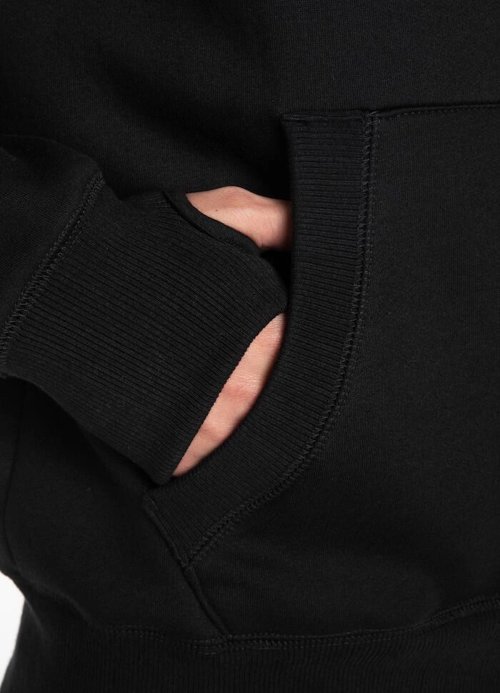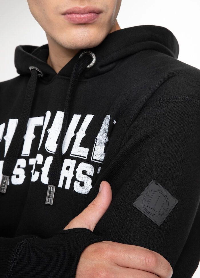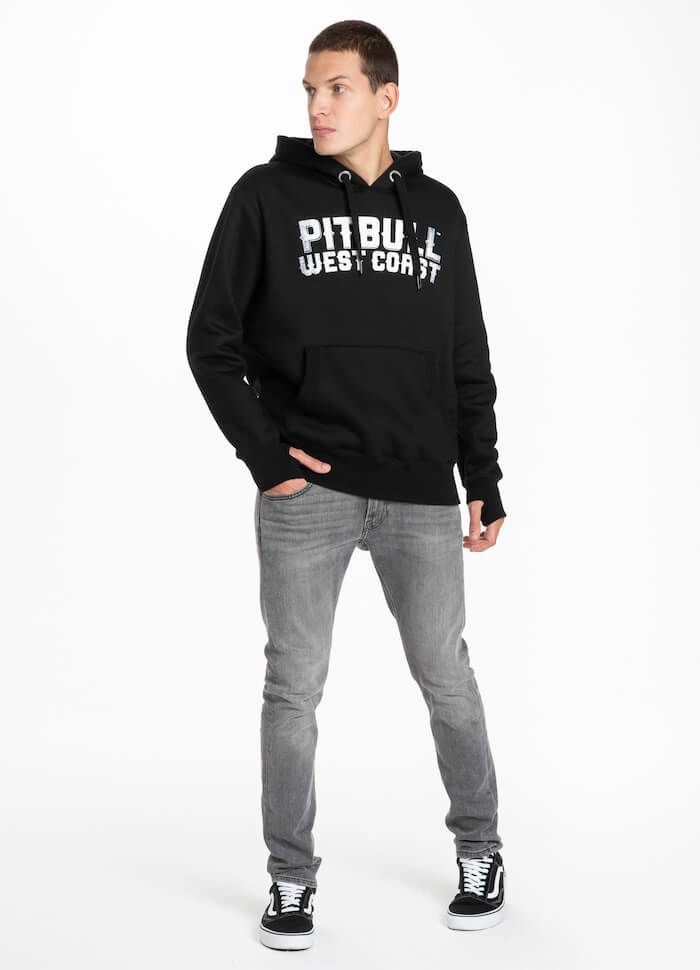 Kaptur regulowany sznurkiem, z metalowymi wykończeniami, duża kieszeń typu kangur z przodu z dostępem z obu boków. Efektowna silikonowa naszywka na rękawie z okrągłym logo firmowym, okazała metka w karku, solidne ściągacze w pasie i na rękawach, a ponadto cecha charakterystyczna bluzy Pitbull West Coast - obszyte otwory na kciuki przy ściągaczach rękawów, zapewniające ochronę przed wiatrem. Na szwie przy karku wszyta została jedwabna lamówka, osłaniająca skórę przed otarciami. Nadruki idealnie nadrukowano na materiał, sporych wymiarów nadruk doskonale komponuje się z resztą ubrania.