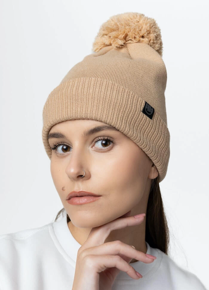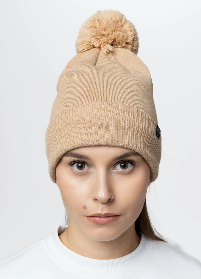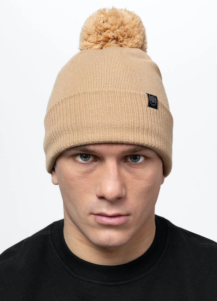 Czapka zimowa PIT BULL BUBBLE SMALL LOGO beżowa