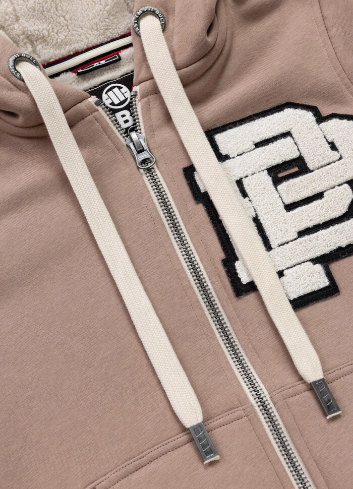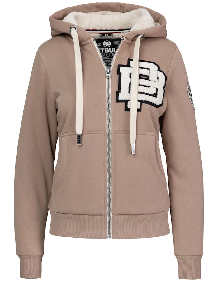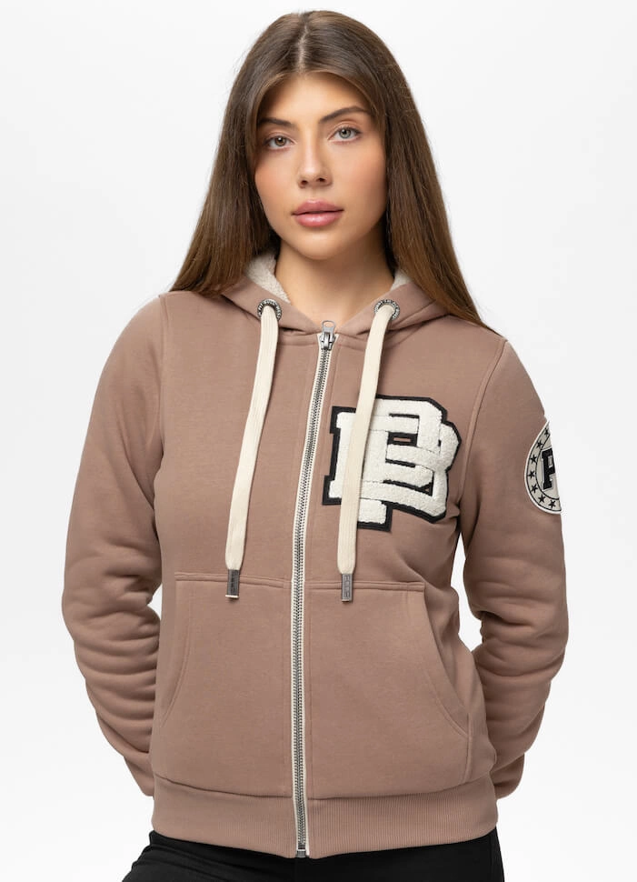 Rozpinana damska bluza z kapturem Pit Bull West Coast Sherpa Ruffina to model zimowy, ocieplony "kożuszkiem", pochodzący z najnowszej kolekcji jesienno-zimowej. Fason lekko zwężany, dopasowany do damskiej sylwetki. Bluza posiada takie własności cieplne jak kurtka zimowa.