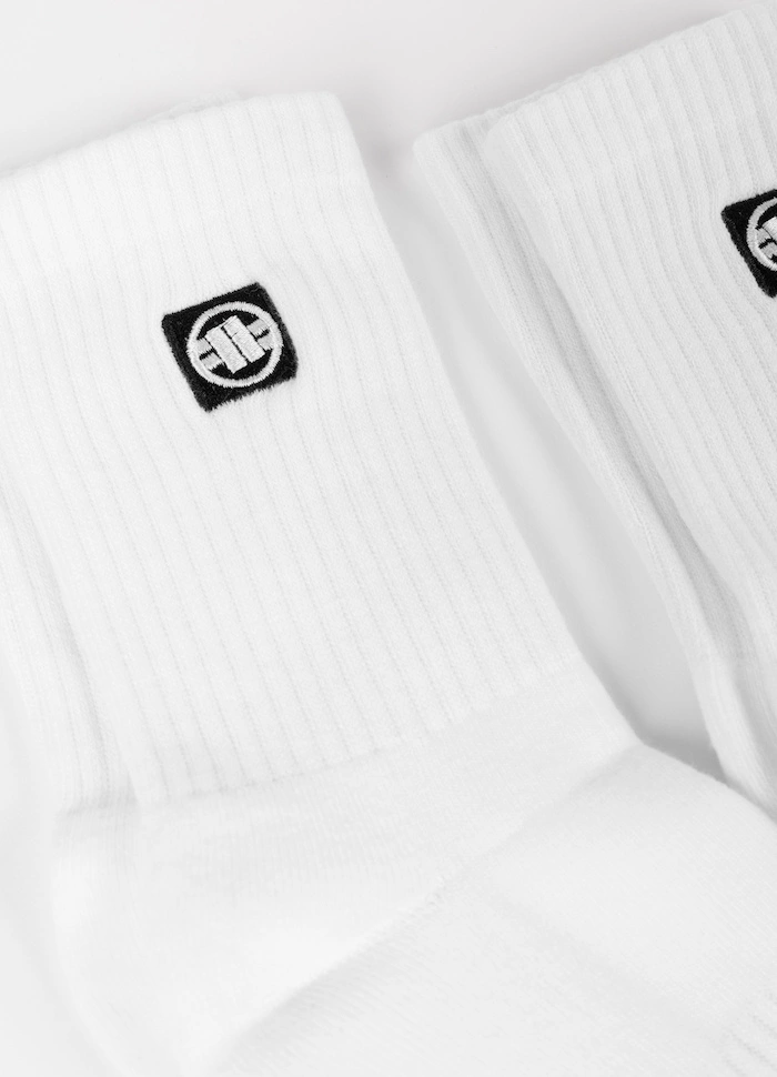 Długie skarpetki PIT BULL HIGH ANKLE LOGO białe grube - 3 pary
