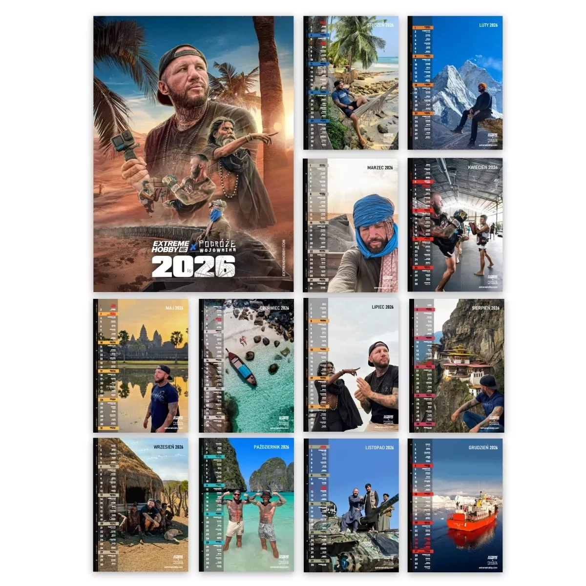 Kalendarz ścienny Podróże Wojownika na rok 2026, to wyjątkowy must-have dla każdego fana Piotra Pająka i jego niezapomnianych wypraw. Dwanaście miesięcy, dwanaście stron wypełnionych zdjęciami z różnych zakątków świata!