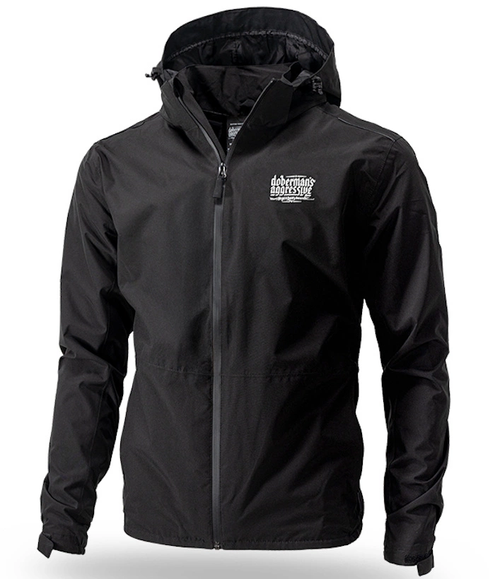 Softshell Dobermans Windbreaker wykonany jest z lekkiego, wodoodpornego materiału, który zapewnia ochronę przed wiatrem i deszczem. Kurtka posiada odpinany, regulowany kaptur oraz elastyczne ściągacze przy mankietach z dodatkową regulacją na rzep, co pozwala na lepsze dopasowanie. Tył kurtki wyposażono w wentylacyjne przeszycie dla lepszej cyrkulacji powietrza.