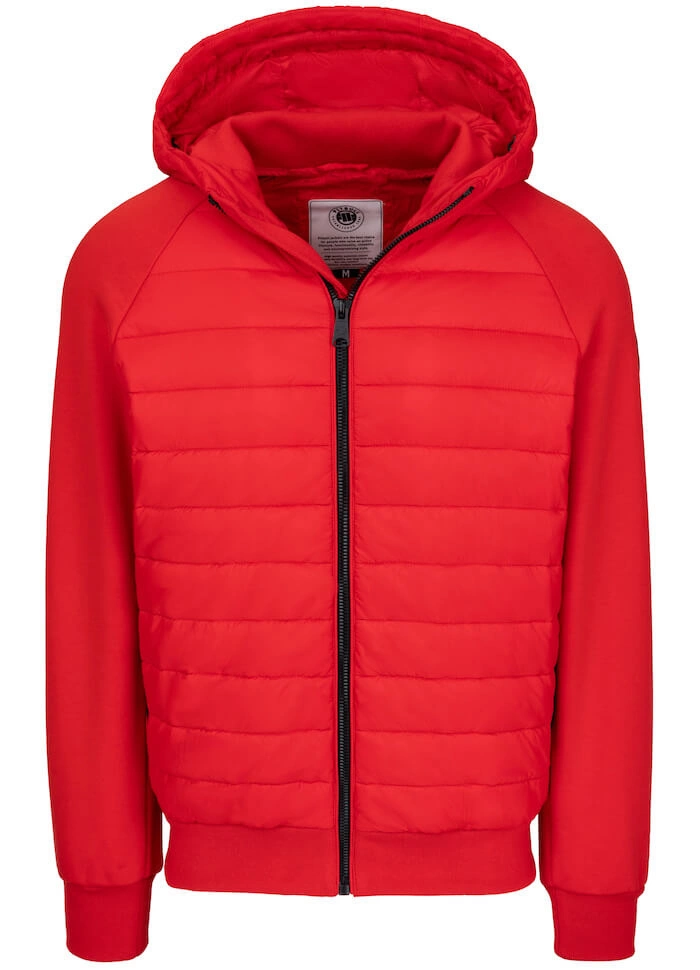 - Kurtka przejściowa hybrydowa z kapturem, fason dopasowany.