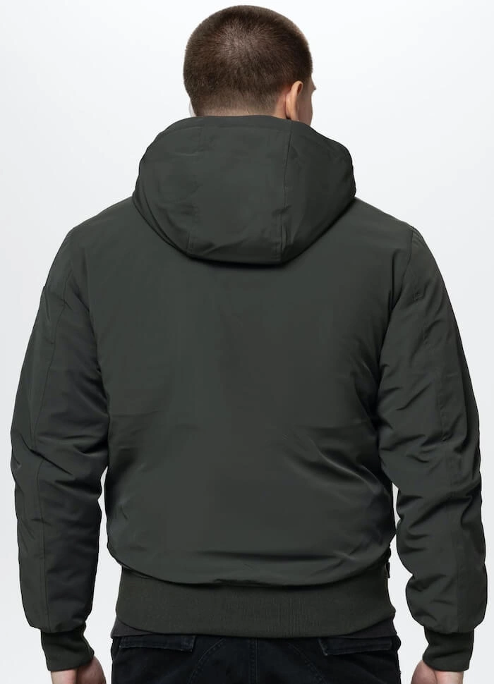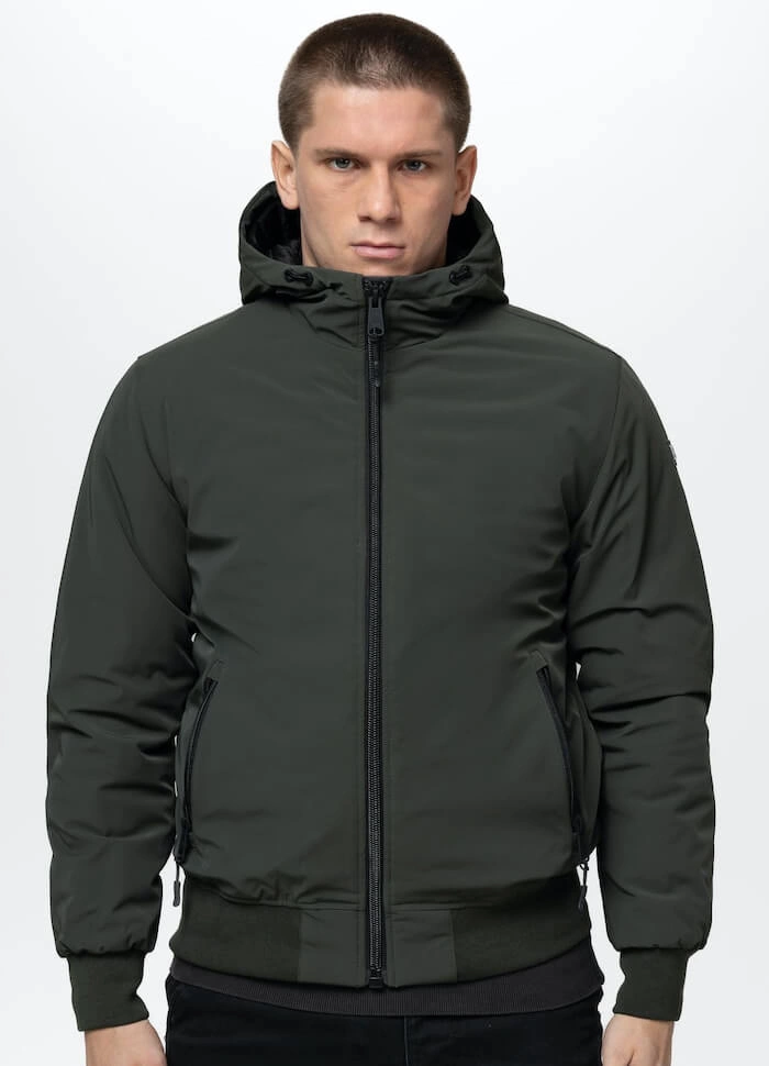 Kurtka wykonana została z tkaniny softshell, wiatroszczelnej i trudno przemakalnej, charakteryzującej się wysoką elastycznością. Ocieplona grubą warstwą podpinki. Kaptur z wysoko zapinanym suwakiem chroni głowę, jest solidnie obszyty i ściągany stoperami.