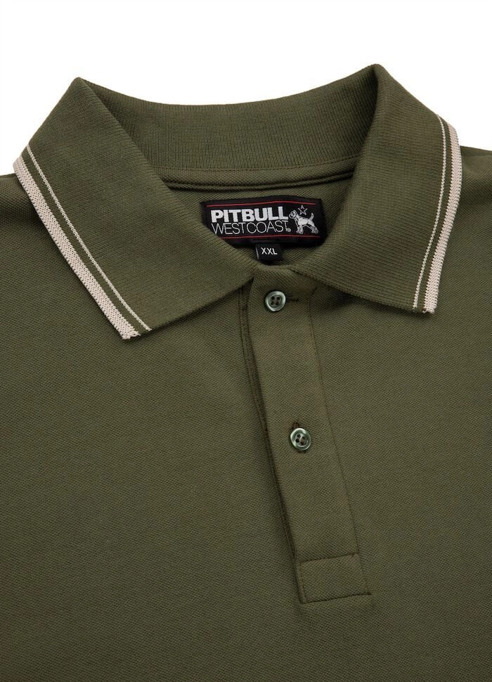 POLO PIT BULL slim fit STRIPES oliwkowe