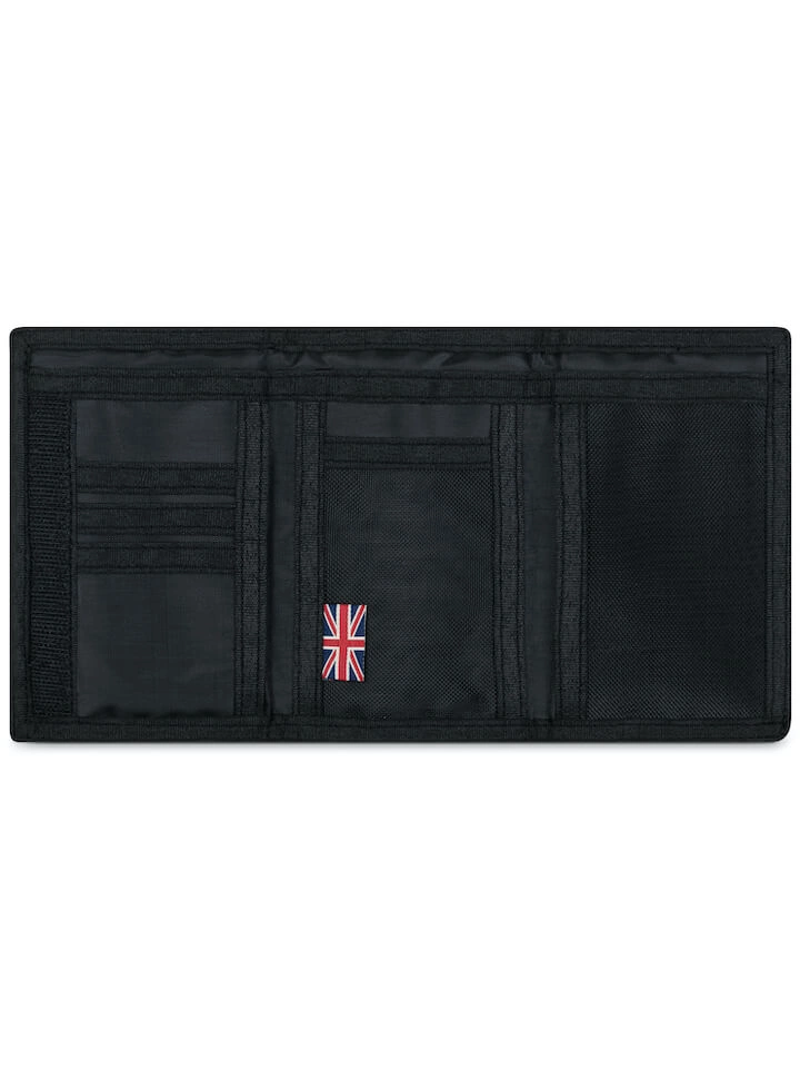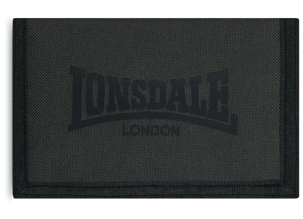 Portfel Lonsdale London Briefield, wykonany z matowego materiału i zapinany na rzep. Na froncie widnieje lekko gumowana gumowa naszywka z logo firmowym. Portfel posiada przegrody na banknoty, a oprócz tego sporo funkcjonalnych przegródek na dokumenty, karty płatnicze itp. Dodatkowa przegródka na monety zamykana na suwak.