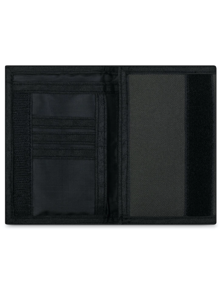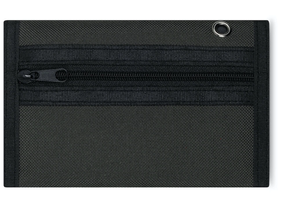 Materiał 100% poliester. Wymiary: zamknięty portfel 9,5 x 13,5 cm, otwarty 27,5 x 13,5 cm.