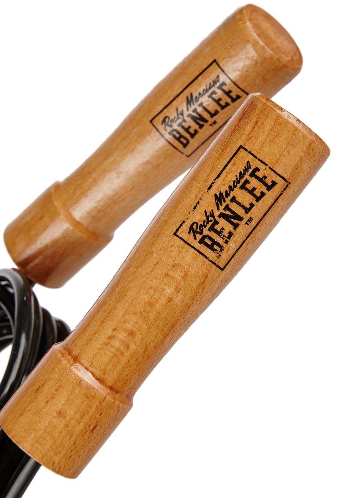 Profesjonalna skakanka Benlee Rocky Marciano Jolly, ze sznurem wykonanym z gumy. Posiada długość 2,7 metra, gładki design i lakierowane, drewniane wyprofilowane rączki na łożyskach, z nadrukiem firmowym.