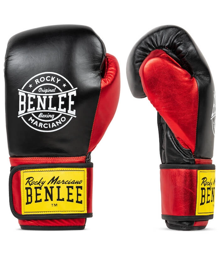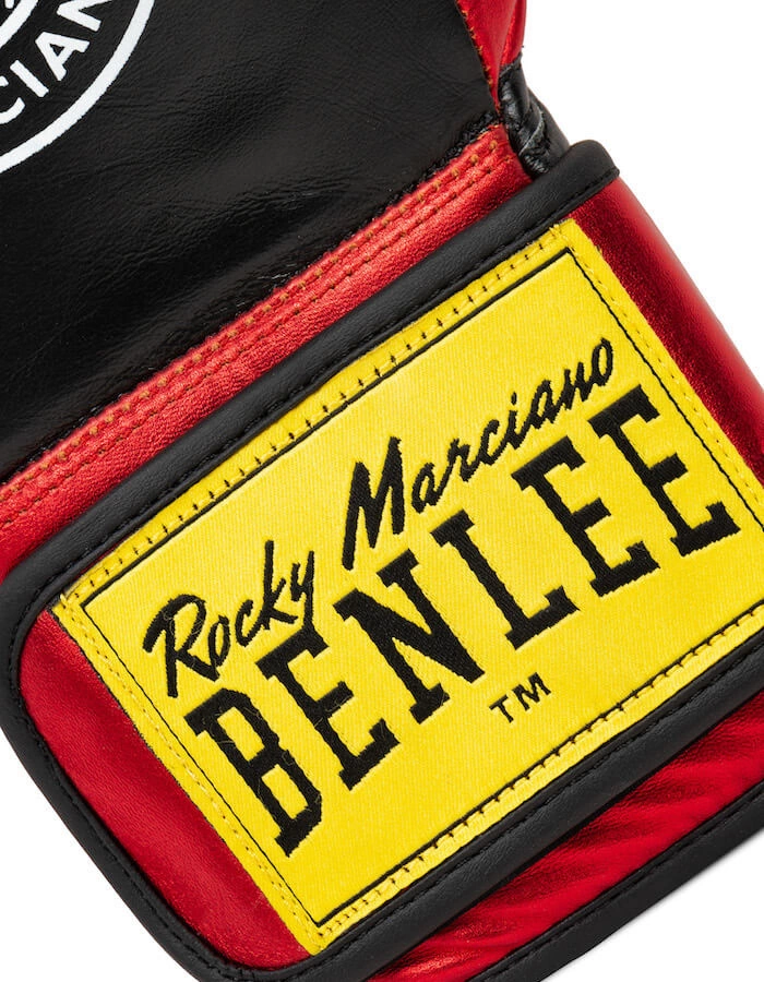 Topowy model rękawic Benlee Rocky Marciano Metalshire, wykonany z najlepszych i najbardziej wytrzymałych materiałów typu premium. Wyróżniają się skórą o metalicznym połysku, której atutem jest nie tylko wygląd, ale i najwyższa odporność na serie uderzeń w ciężki worek bokserski.