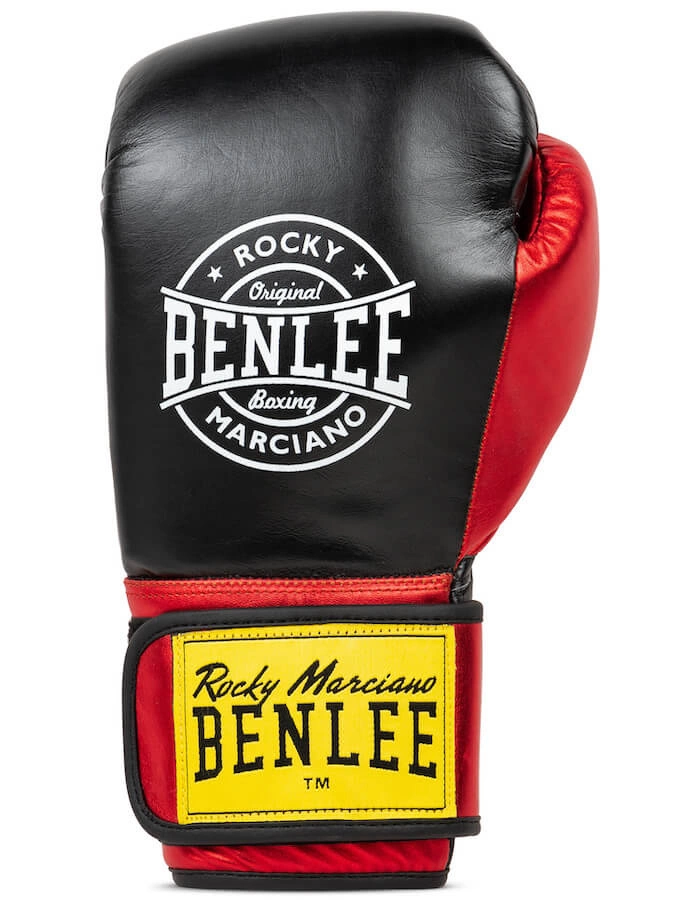 - Topowe rękawice bokserskie Benlee, wykonane ze skóry naturalnej o metalicznym połysku.
