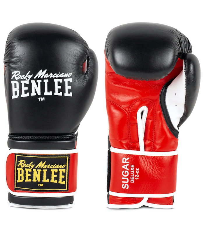 Rękawice bokserskie Benlee Rocky Marciano, Sugar de Luxe, to udoskonalona wersja znakomitych jakościowo, profesjonalnych rękawic bokserskich wykonanych ze skóry naturalnej. Blokada kciuka, zapięcie na rzepy. Wewnątrz wypełnione są czterema warstwami pianki o różnej gęstości i składzie. Strefa uderzeniowa rękawicy połączona jest z kciukiem, co uniemożliwia ewentualną jego kontuzję.