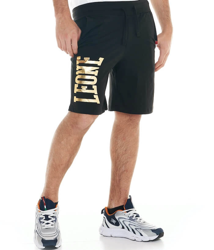 - Krótkie spodenki Leone z nadrukiem w kolorze złotym.