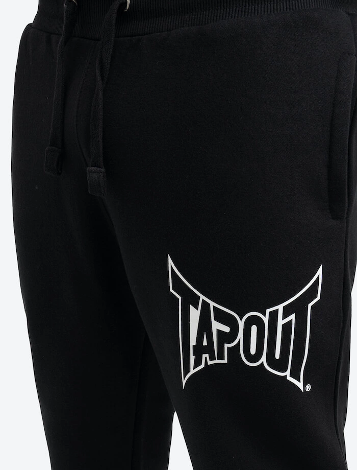 Wygodne spodnie dresowe Tapout Lifestyle o klasycznym, regularnym kroju, bez ściągaczy na dole. Na lewym udzie widnieje małe logo producenta wykonane sitodrukiem.