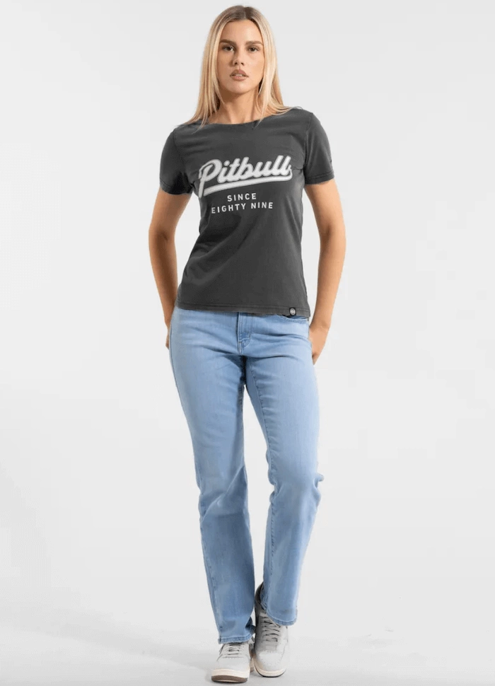T-shirt damski PIT BULL Denim Washed ANGEL LOGO grafitowy