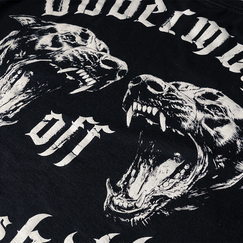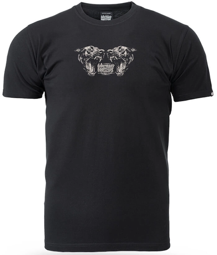Koszulka Dobermans Aggressive Mad as hell TS383, wykonana z bardzo dobrej dzianiny bawełnianej. Na plecach posiada nadruk w klimacie ulicznym z wizerunkiem psów bojowych. Podobny motyw w mniejszej skali powielony został z przodu na piersiach. Nadruki wykonane techniką termotransferu.