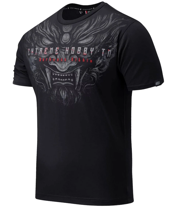 Koszulka Extreme Hobby Devil reprezentuje najnowszą kolekcję wiosenno-letnią. Na froncie widnieje duża, oryginalna grafika zachodząca aż pod samą szyję i barki, przedstawiająca mroczną postać tytułowego diabła.
