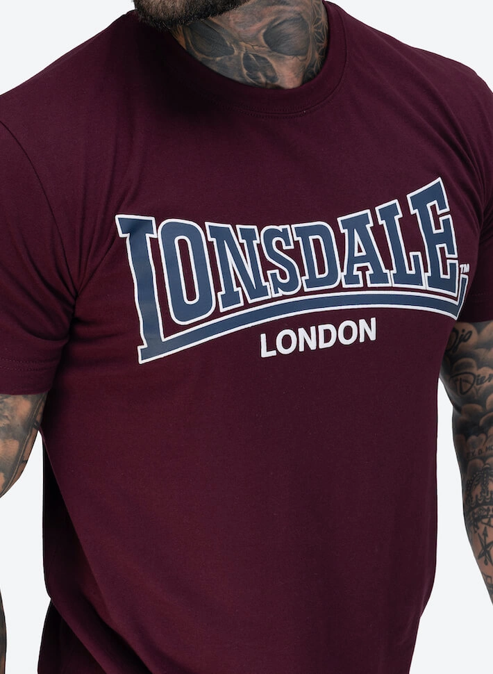 Koszulka Lonsdale London Dukinfield, o klasycznym wyglądzie, z dużym logo firmowym nadrukowanym z przodu, z lekko wypukłymi konturami liter. Znakomita jakość materiału (100% bawełna czesana).