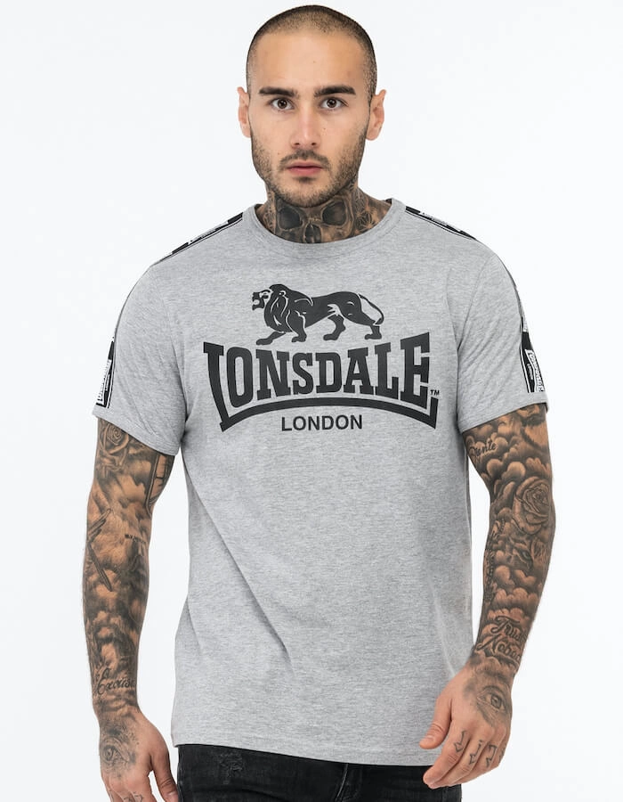 Koszulka Lonsdale London Stour, o modnym wyglądzie, z dużym logo firmowym nadrukowanym z przodu i dodatkowo lampasami z motywami firmowymi, naszytymi na ramionach. Znakomita jakość materiału (100% bawełna czesana).