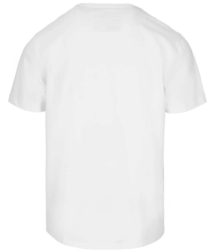 T-shirt został uszyty z wysokogatunkowej bawełny, odpornej na odkształcenia i wytrzymałej. Cechuje się też dobrą gramaturą (170 g/m2) oraz jedwabną lamówką umieszczoną na szyi, chroniącą skórę przed otarciami. Na dole i na rękawku wszyte są żakardowe metki firmowe.