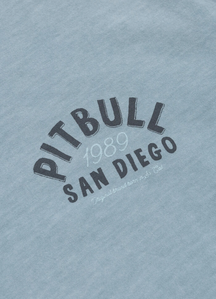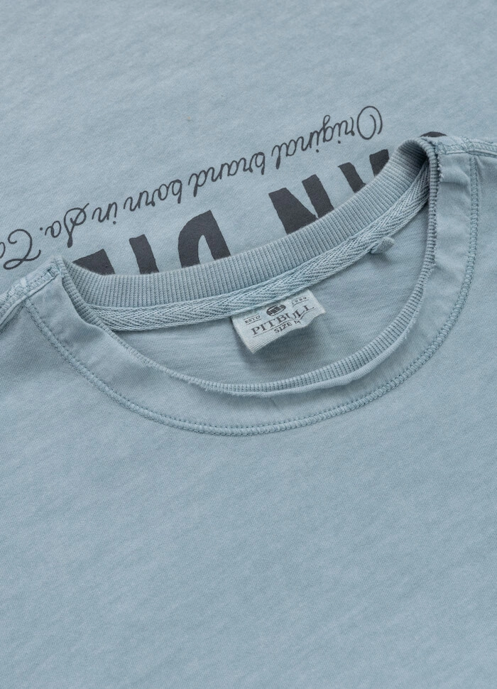 Koszulka Pit Bull Denim Washed Raw Edge PACIFIC z najnowszej kolekcji wiosenno-letniej, reprezentująca serię Denim Washed z nałożonym delikatnym efektem sprania. T-shirty z tej serii cechuje też bardzo dobra gramatura materiału 190 gr/m2.