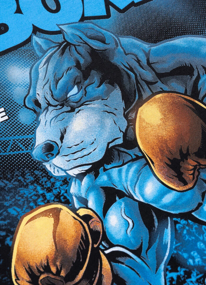 Z przodu i z tyłu dopracowane nadruki o tematyce sportów walki. Na dole i na rękawku wszyte są żakardowe metki firmowe.