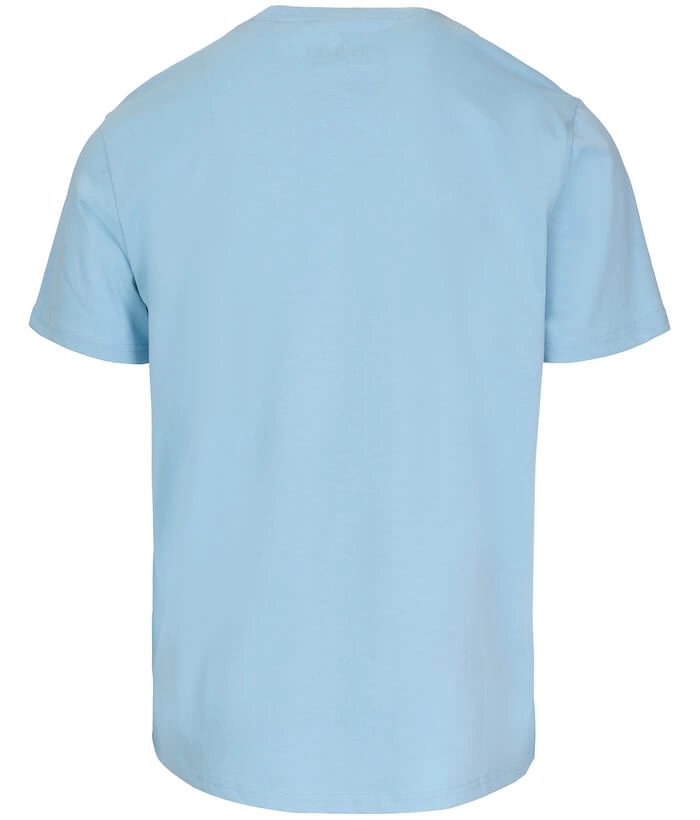 T-shirt został uszyty z wysokogatunkowej bawełny, odpornej na odkształcenia i wytrzymałej. Cechuje się też dobrą gramaturą (170 g/m2) oraz jedwabną lamówką umieszczoną na szyi, chroniącą skórę przed otarciami. Na dole i na rękawku wszyte są żakardowe metki firmowe.