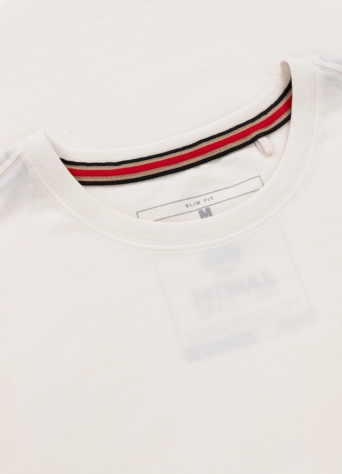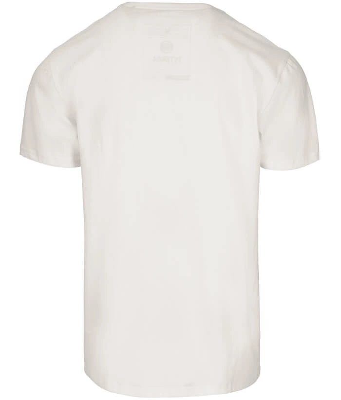 T-shirt został uszyty z wysokogatunkowej bawełny, odpornej na odkształcenia i wytrzymałej. Cechuje się też dobrą gramaturą (170 g/m2) oraz jedwabną lamówką umieszczoną na szyi, chroniącą skórę przed otarciami. Na dole i na rękawku wszyte są żakardowe metki firmowe.