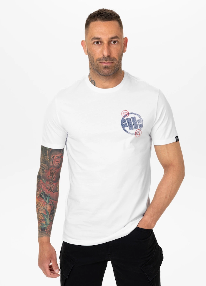 T-shirt został uszyty z wysokogatunkowej bawełny, odpornej na odkształcenia i wytrzymałej. Cechuje się też dobrą gramaturą (170 g/m2) oraz jedwabną lamówką umieszczoną na szyi, chroniącą skórę przed otarciami. Na dole i na rękawku wszyte są żakardowe metki firmowe.