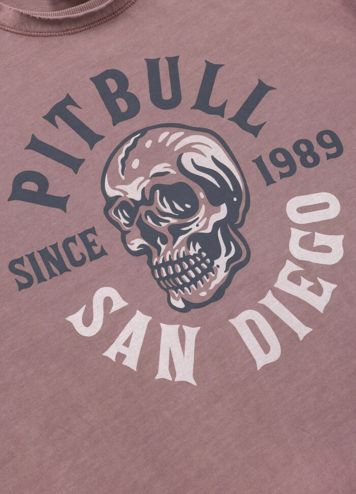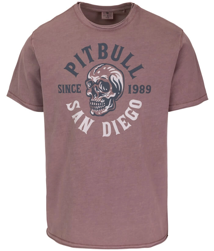 T-shirt PIT BULL T-shirt PIT BULL Denim Washed RAW EDGE SKULL LOGO dusty burgundy