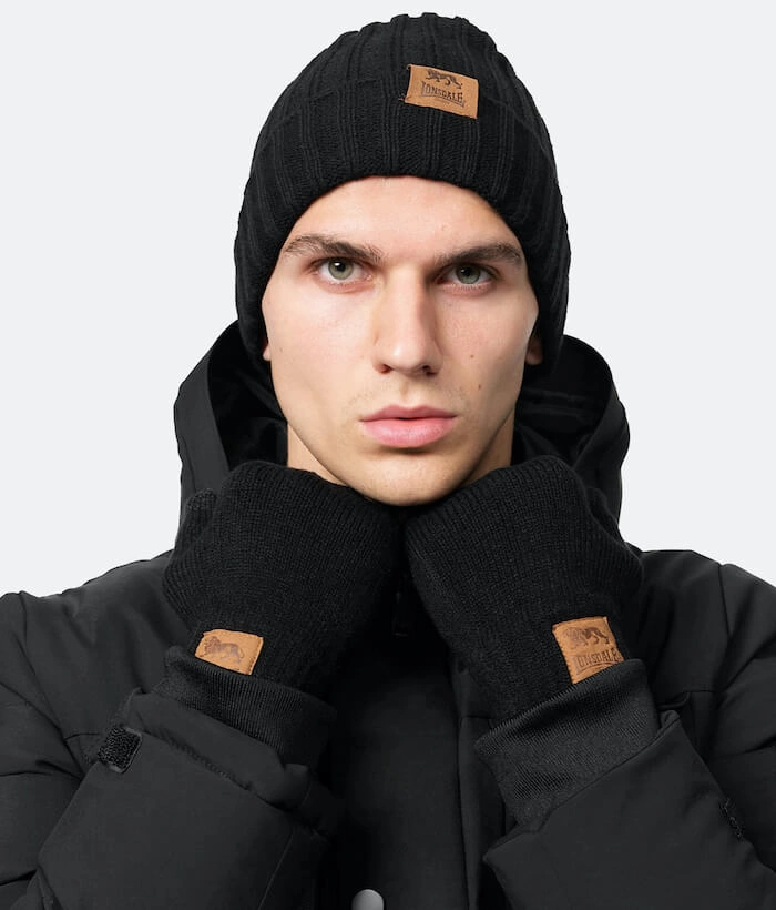 Zestaw czapka zimowa + rękawiczki LONSDALE LONDON DEAZLEY czarny