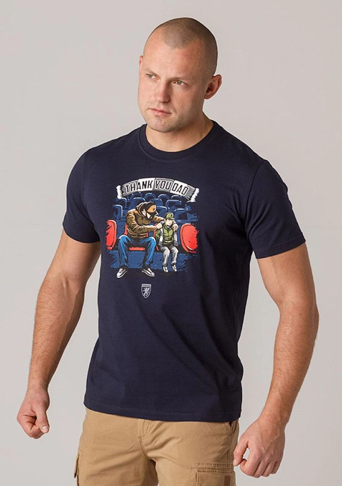 Koszulka PGwear Thank you Dad z kolekcji wiosna-lato 2022, z nadrukiem o tematyce kibicowskiej, przedstawiającym pasję do futbolu przekazywaną z ojca na syna.