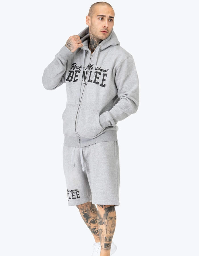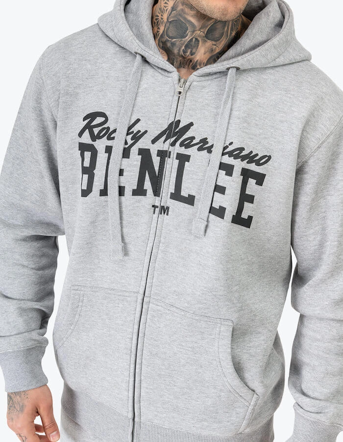 Rozpinana bluza z kapturem Benlee Rocky Marciano Vitalino z dużym nadrukiem firmowym z przodu i mniejszym na dole, z boku.