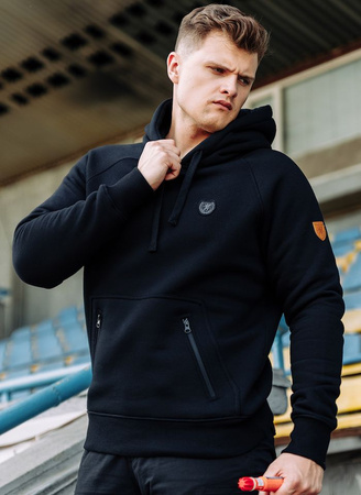 Bluza uszyta została z najlepszej jakościowo dzianiny (100% bawełna, gramatura 340 gr/m2). Na dole rękawów i tułowia wyposażona jest w solidne, mocne ściągacze. Kaptur regulowany sznurkiem, dwie kieszenie po bokach zapinane na suwaki.