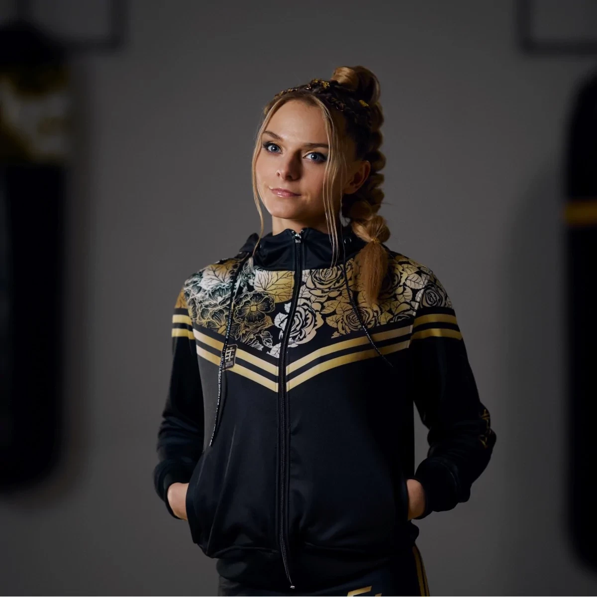 Bluza sportowa z kapturem dla kobiet o dopasowanym kroju. Nadaje się do uprawiania wielu sportów na świeżym powietrzu, jak i do użytku na co dzień. Występuje w komplecie ze spodniami.