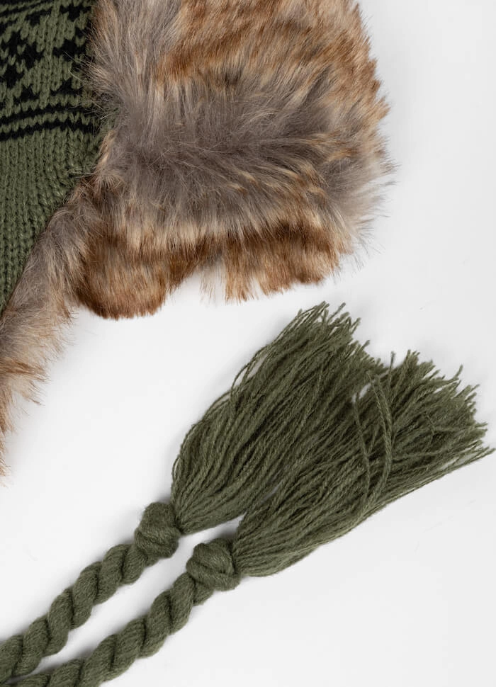 - Ciepła czapka zimowa typu "uszatka" z nausznikami i futerkiem w środku.