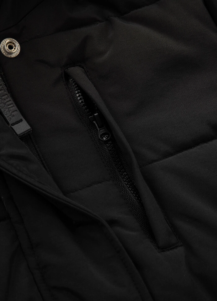 Ten model kurtki Pitbull posiada dwie kieszenie boczne zapinane na suwaki, a dodatkowo na górze na lewej piersi biegnie pionowa kieszonka, również zapinana na zamek błyskawiczny. W środku kurtki oczywiście również producent zadbał o niewielką kieszonkę na drobiazgi.