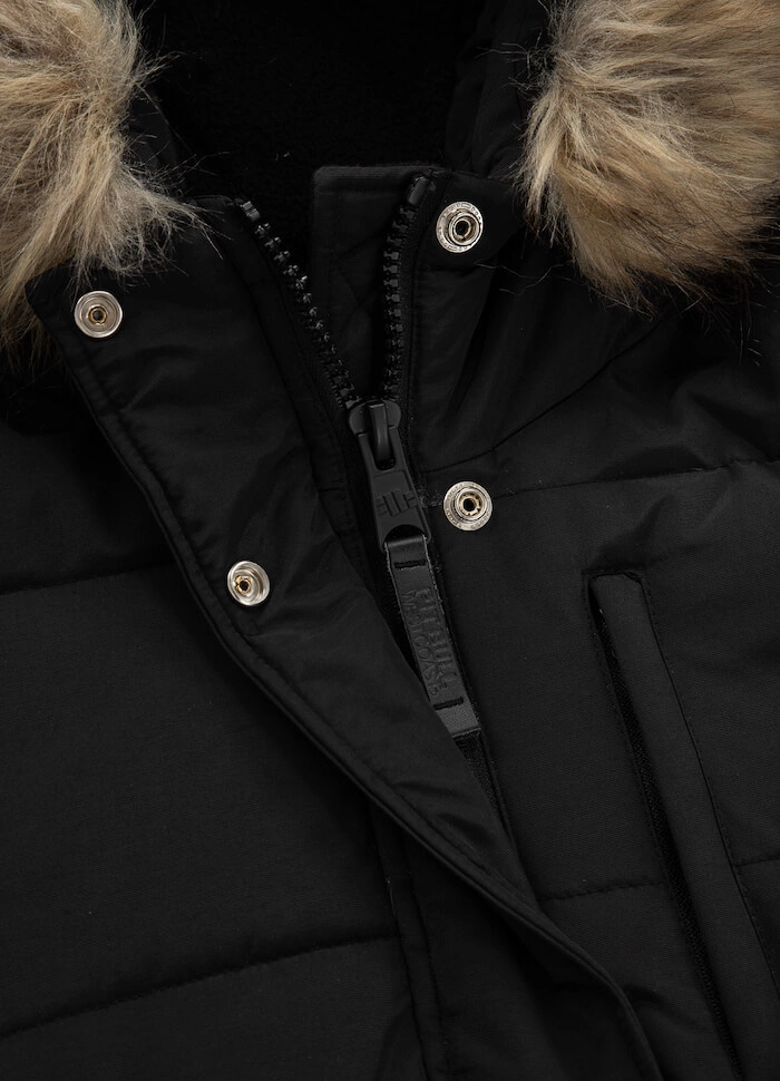 Damska alaska Pitbull Firethorn zapinana jest na lekko przesuwający się i niezawodny plastikowy zamek błyskawiczny. Praktyczne ściągacze w rękawach zapobiegają przedostawianiu się śniegu i jednocześnie zatrzymują ciepło wewnątrz kurtki. Z kolei wysoko zapinany zamek chroni brodę i szyję przed podmuchami wiatru. Kaptur posiada regulację głębokości za pomocą stoperów oraz tylnej klamry.