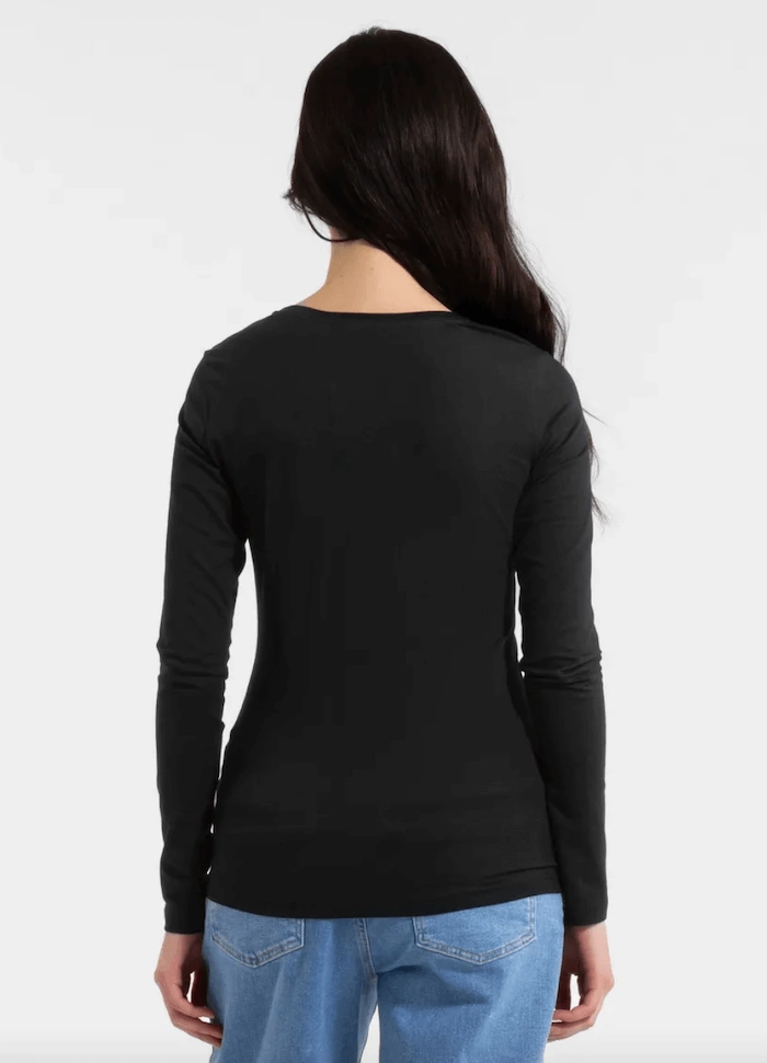 - Damski longsleeve z lekko elastycznego materiału, o dopasowanym kroju podkreślającym sylwetkę.