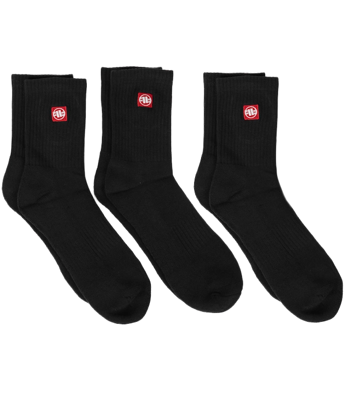 Długie skarpetki PIT BULL HIGH ANKLE  LOGO czarne cienkie - 3 pary