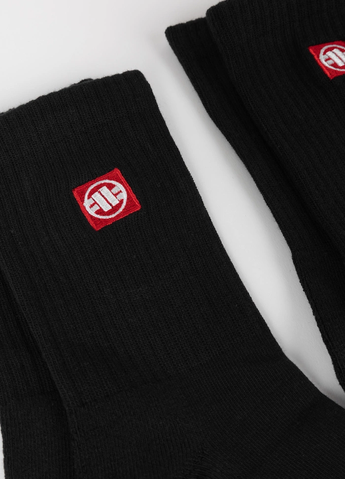 Opinie o Długie skarpetki PIT BULL HIGH ANKLE LOGO czarne cienkie - 3 pary