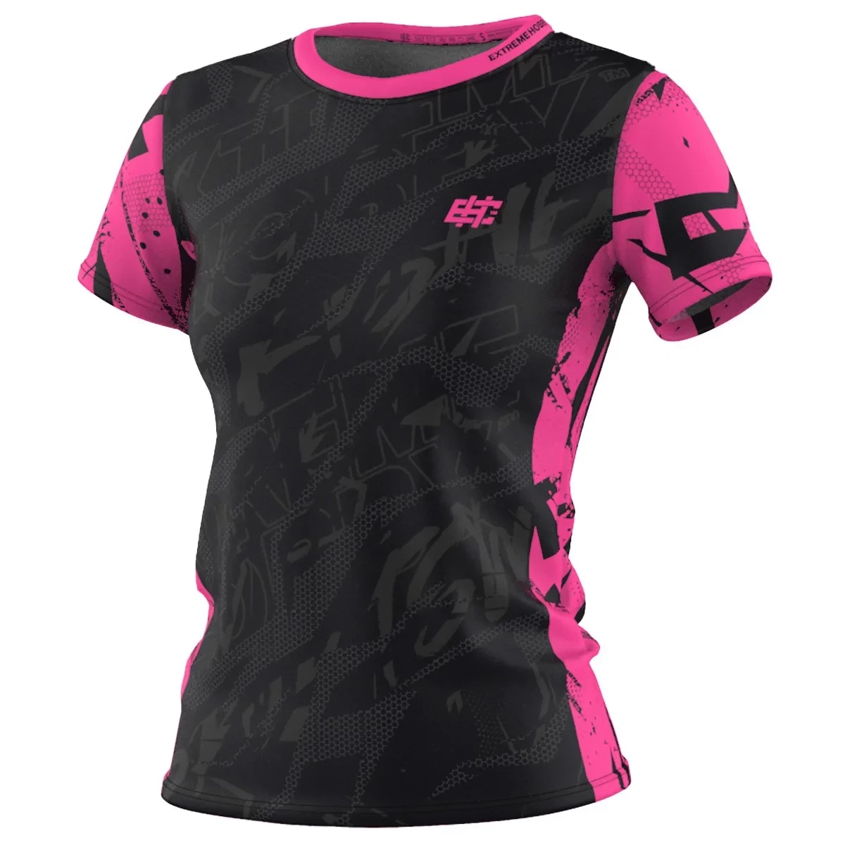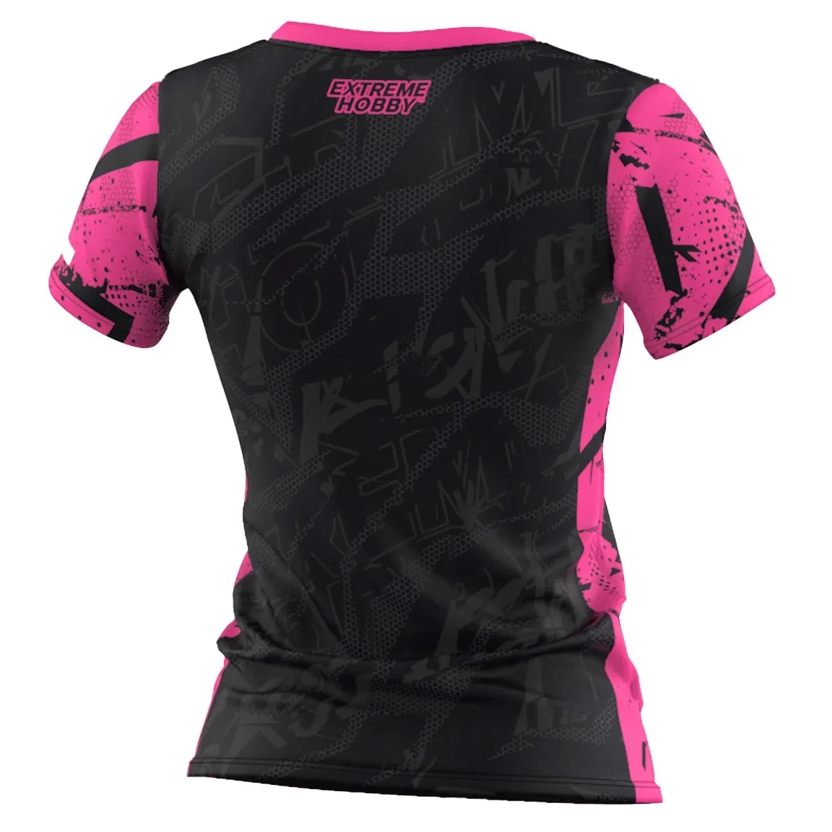 Zaawansowane technologicznie koszulka damska z krótkim rękawem. Idealna do biegania i jazdy na rowerze, termoaktywna i kompresyjna. Produkt stworzony z wykorzystaniem farby fluorescencyjnej.
