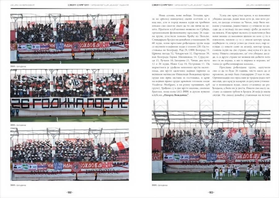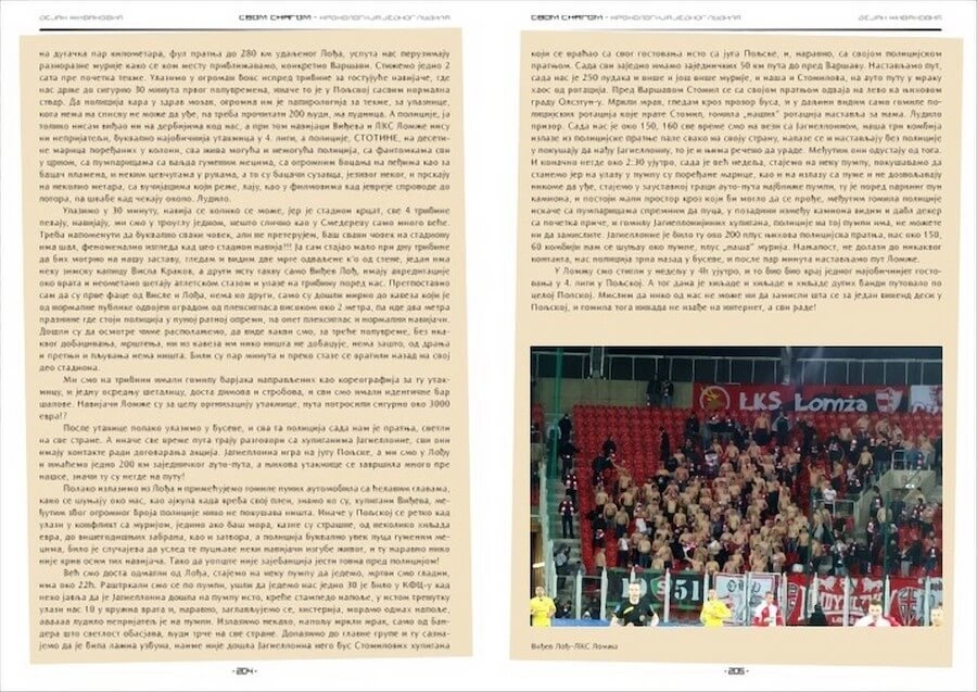 Serbska książka kibicowska "SVOM SNAGOM Hronologija jednog ludila" ("Z CAŁEJ SIŁY - chronologia szaleństwa") autorstwa  Dejana Živanovicia to historia ekipy Invalidi Voždovac - kibiców belgradzkiego klubu FK Voždovac. Mała, ale bardzo charakterna grupa, znana w Polsce z tego, że ma stadion dosłownie na dachu galerii handlowej,  a także dobrą zgodę z kibicami ŁKS Łomża. Jednak Invalidi to przede wszystkim ekipa, która udowodniła wielokrotnie, że ma jaja, by stawić czoła liczniejszej grupie przeciwników na kibicowskim szlaku. Wyjazdy na niebezpieczne tereny, zuchwałe ataki na miejscowe bandy, a także walka z lokalnymi rywalami w swoim mieście Belgradzie - serbskiej stolicy, gdzie ruch kibicowski należy przecież do najsilniejszych na świecie. Do tego oldschoolowe oprawy, typowo bałkański klimat ultras, spontaniczny, żywiołowy i dziki. Ta książka przedstawia to wszystko - autentyczny styl kibicowski, od lat 90. aż do dzisiaj. Oldschoolowe fotki i treści wydane zostały w jak najbardziej współczesnej formie - cieszą oko swoją szatą graficzną, papierem i twardą okładką. Książka kibicowska SVOM SNAGOM to znakomity pomysł na prezent i obowiązkowa propozycja dla kolekcjonerów wydawnictw kibicowskich!