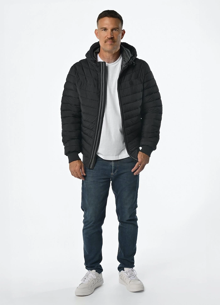 Ocieplana pikowana kurtka jesienno-zimowa Pitbull West Coast Naylor Hooded uszyta w całości z funkcjonalnego materiału, który chroni przed wiatrem i deszczem.