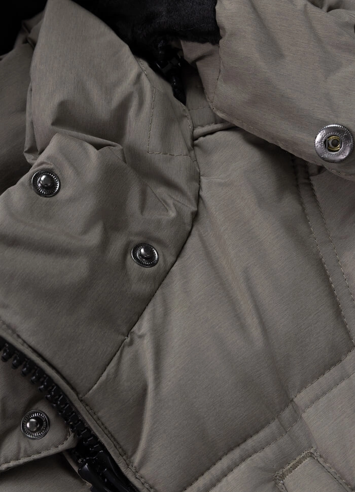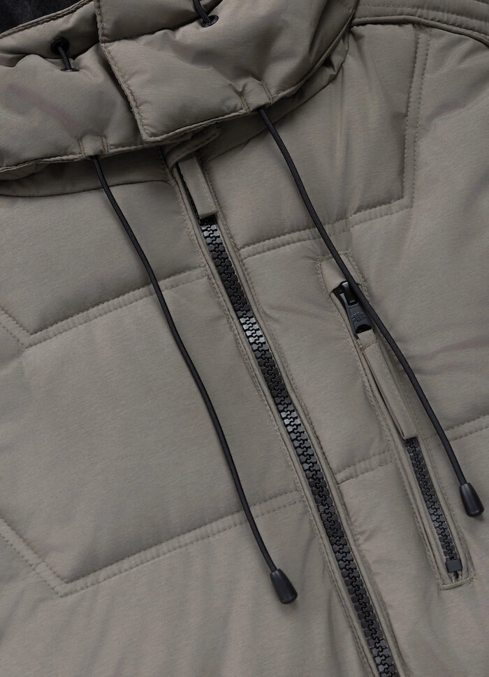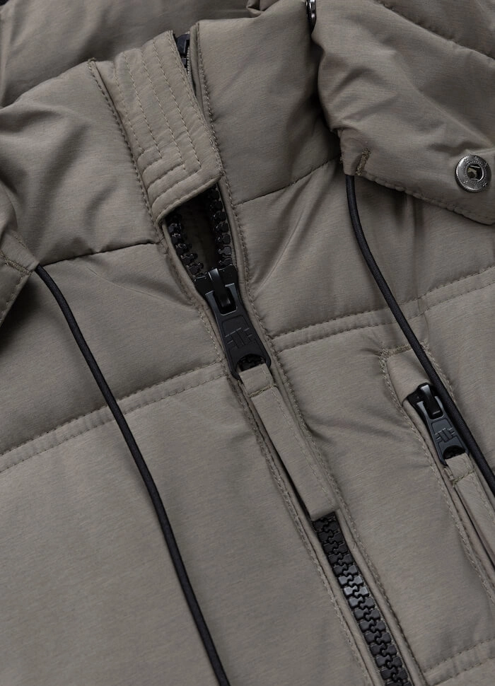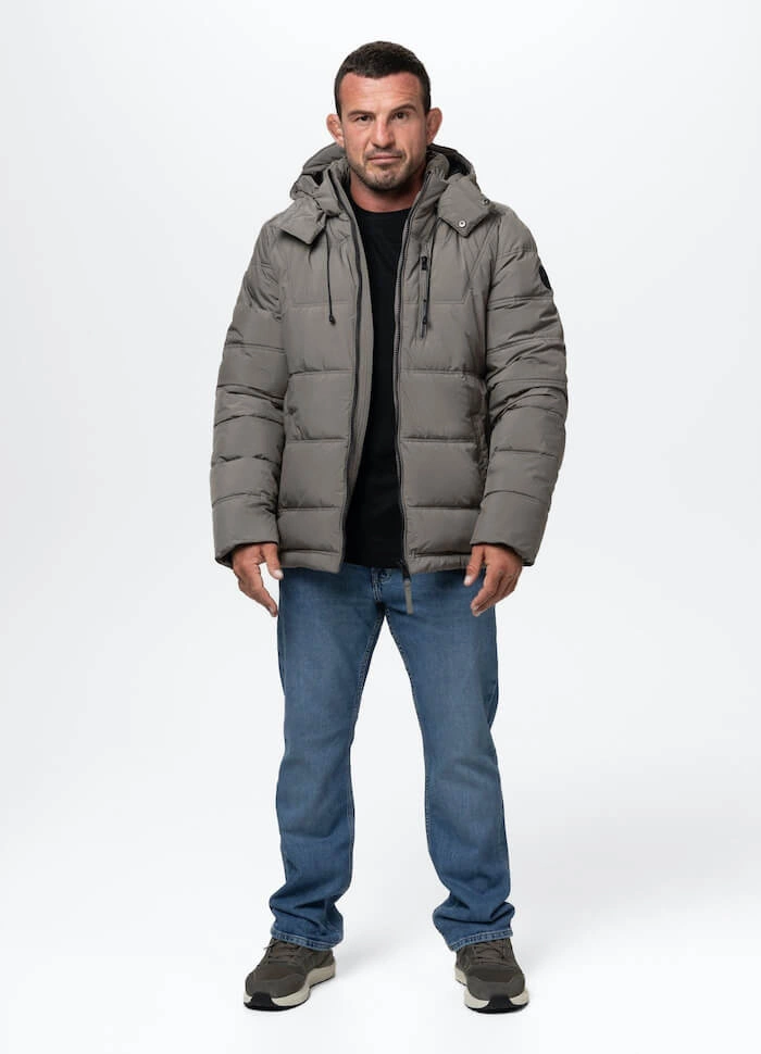 - Zimowa kurtka wypełniona ciepłym, syntetycznym puchem. Obszerna i wygodna, o dość luźnym kroju.