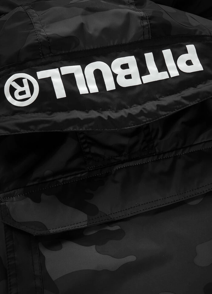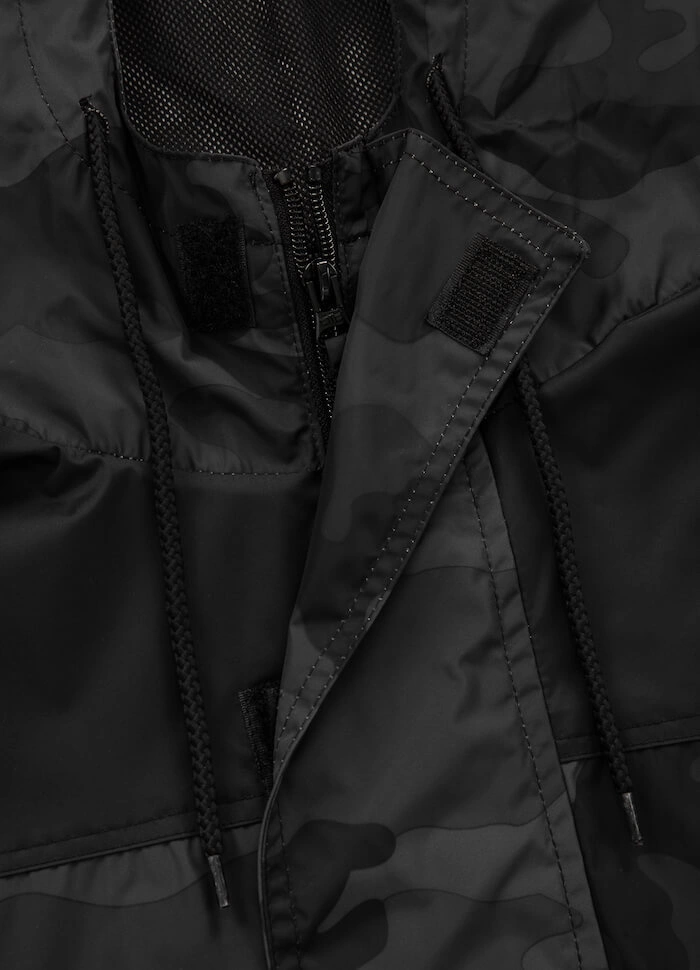 Ten windbreaker Pit Bull West Coast posiada napis firmowy nadrukowany z tyłu na kapturze, a na rękawie znajduje się gumowa naszywka firmowa. W karku wszyta została konkretna metka żakardowa. Uchwyty zamków i inne metalowe i plastikowe detale z wytłoczonymi motywami Pit Bull West Coast.