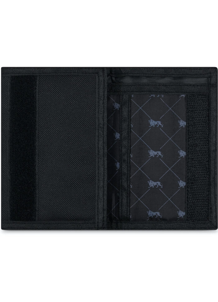 Portfel Lonsdale London Arnfield, wykonany z matowego materiału i zapinany na rzep. Na froncie widnieje estetyczna gumowa naszywka z logo firmowym. Podszewka zadrukowana kultowymi motywami lwa.