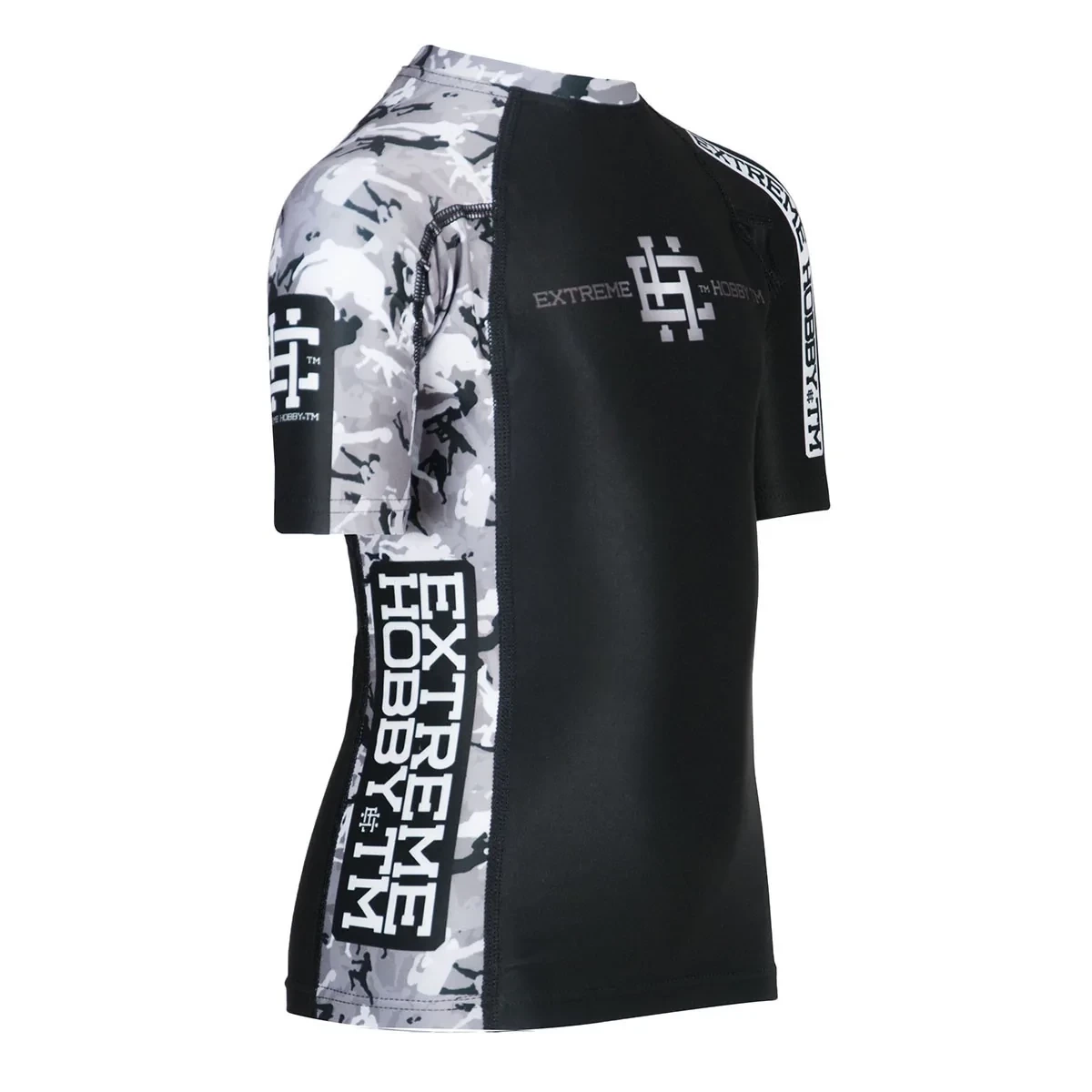 Termoaktywna koszulka dziecięca z krótkim rękawem typu rashguard. Idealna do sportów walki, na siłownię oraz wszędzie tam gdzie zwykłe koszulki bawełniane nie zapewniają należytej ochrony i komfortu.